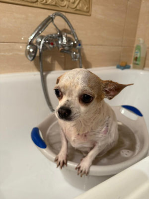 Die kleine Abi hatte großes Glück und wurde von ihrer Züchterin ausgemustert. Dadurch konnte sie nun auf unsere polnische Pflegestelle umziehen . Dort wird sie nun auf ihr neues Leben vorbereitet. Die kleine Maus war anfangs noch ziemlich schüchtern, kannte sie doch kein normales Familienleben. Nun taut sie von Tag zu Tag mehr auf und freut sich über ihr kuscheliges Körbchen. Abi lebt friedlich mit mehreren Hunden von groß bis klein zusammen. Auch die Katzen der Pflegestelle sind kein Problem für den kleinen Schatz. Mittlerweile hat sich Abi gut an das Leben im Haus gewöhnt und findet es richtig klasse. Abi kennt auch bereits die Enkelkinder der Familie. Dennoch wünschen wir uns ein Zuhause wo es vielleicht etwas ruhiger zugeht und das Hündchen in Ruhe ankommen kann. Einfühlsame und geduldige Menschen sind gefragt, die die kleine Abi weiter auf ihrem Weg in ein normales Hundeleben begleiten möchten. Abi hat eine alte Hornhautverletzung am Auge. Dies wurde tierärztlich untersucht. Wahrscheinlich ist die Sehkraft auf dem einen Auge etwas eingeschränkt, was Abi aber keine Probleme bereitet.
