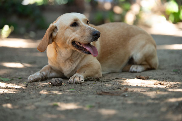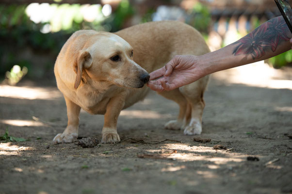 Alma ist eine eher schüchterne, feinfühlig Hündin.Sie ist gut händelbar, zeigt sich freundlich, aber manchmal versteht sie einfach noch nicht so recht, was man von ihr möchte. Kein Wunder, denn Alma hat bisher noch nicht viel kennenlernen dürfen. In ihrer Hundegruppe blüht sie richtig auf – dort ist sie offen, neugierig und bewegt sich sicher. Nimmt man sie allerdings aus diesem vertrauten Rahmen heraus, zeigt sich ihre unsicherere Seite. Doch genau hier braucht sie Menschen, die sie mit Ruhe, Geduld und souveräner Führung an die Pfote nehmen und ihr zeigen: Du musst keine Angst haben, wir machen das gemeinsam.