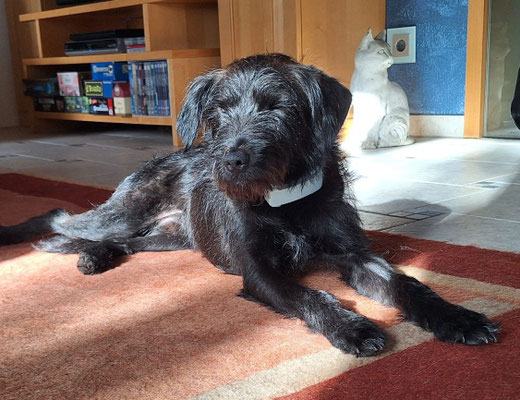 Hund. Er hat sich gut bei uns eingelebt und war vom ersten Tag an stubenrein.