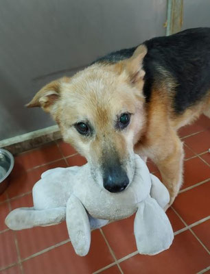 Deshalb geht er eifrig zur Physiotherapie "turnen" und bekommt Laserbehandlungen, die er auch zukünftig genießen sollte!