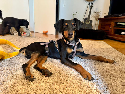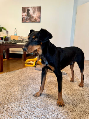 Flock ist gut auf seiner Pflegestelle 40699 Erkrath angekommen. Mit den beiden vorhandenen Rüden versteht er sich prima und fordert sie zum Spiel auf. Stubenreinheit ist kein Thema, Autofahren auch nicht, nur das Einsteigen mag er nicht gern. Das wird nun intensiv von der Pflegestelle geübt. Spaziergänge findet er prima und aufregend, Hundebegegnungen sind freundlich und werden gesucht. Flock ist ein sehr menschenbezogener Rüde, lässt sich gern krabbeln und würde am liebsten alle Menschen ob groß oder klein küssen. Nachts schläft er problemlos in seinem Körbchen und freut sich riesig auf den morgendlichen Spaziergang. Gern kann Flock auf seiner Pflegestelle kennen gelernt werden und wird sicherlich mit seinem Charm überzeugen.