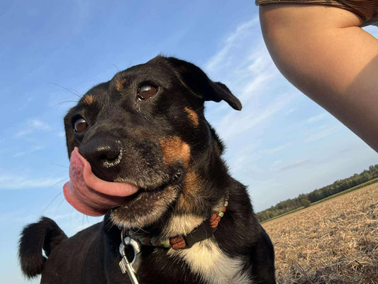 Fester ist ein freundlicher, fröhlicher und eher ruhiger Hund. Er genießt Spaziergänge und läuft gut an der Leine. Fester versteht sich gut mit anderen Hunden und kann gerne Zweithund werden.