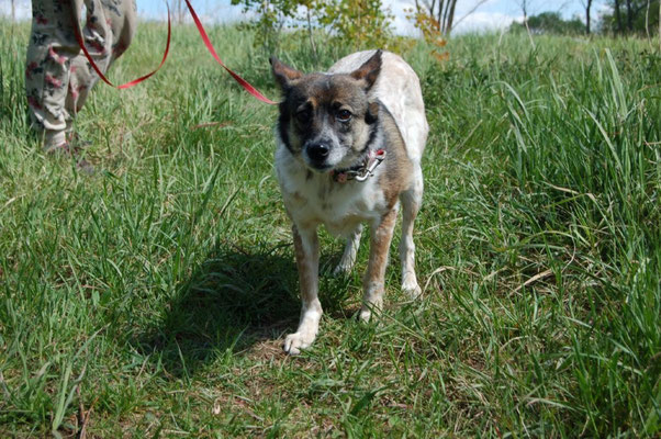 Lada läuft brav an der Leine. Sie geht für ihr Leben gerne spazieren und kommt auch zurück, wenn man sie ruft. Mit den meisten Hunden verträgt sich Lada gut.