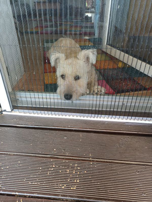 Paula bleibt auch mal brav alleine, wenn auch nicht unbedingt gerne. Sie hat ihre Besitzer fast überall hin begleitet.