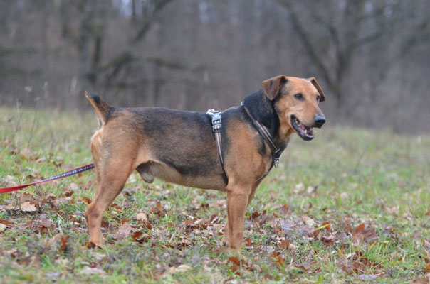 Für ein warmes Bett und einen vollen Napf wird er mit seiner Liebe zurückzahlen, denn er ist ein lieber Hund.