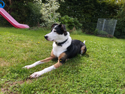 Trik lebte in einer Familie mit Kleinkind. Leider kam es im Urlaub in ungewohnter Umgebung zu einem Beißvorfall, als das Kind auf den Hund zukrabbelte. Obwohl dies ein einmaliger Vorfall war und schon ein Jahr her ist, vermitteln wir ihn nicht zu Kindern.